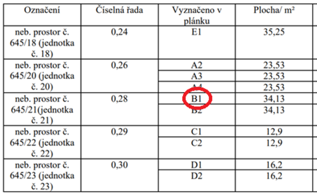 - jednotka č. 645/21, způsob využití – rozestavěná jednotka, zapsáno na LV 1783, vymezeno v: