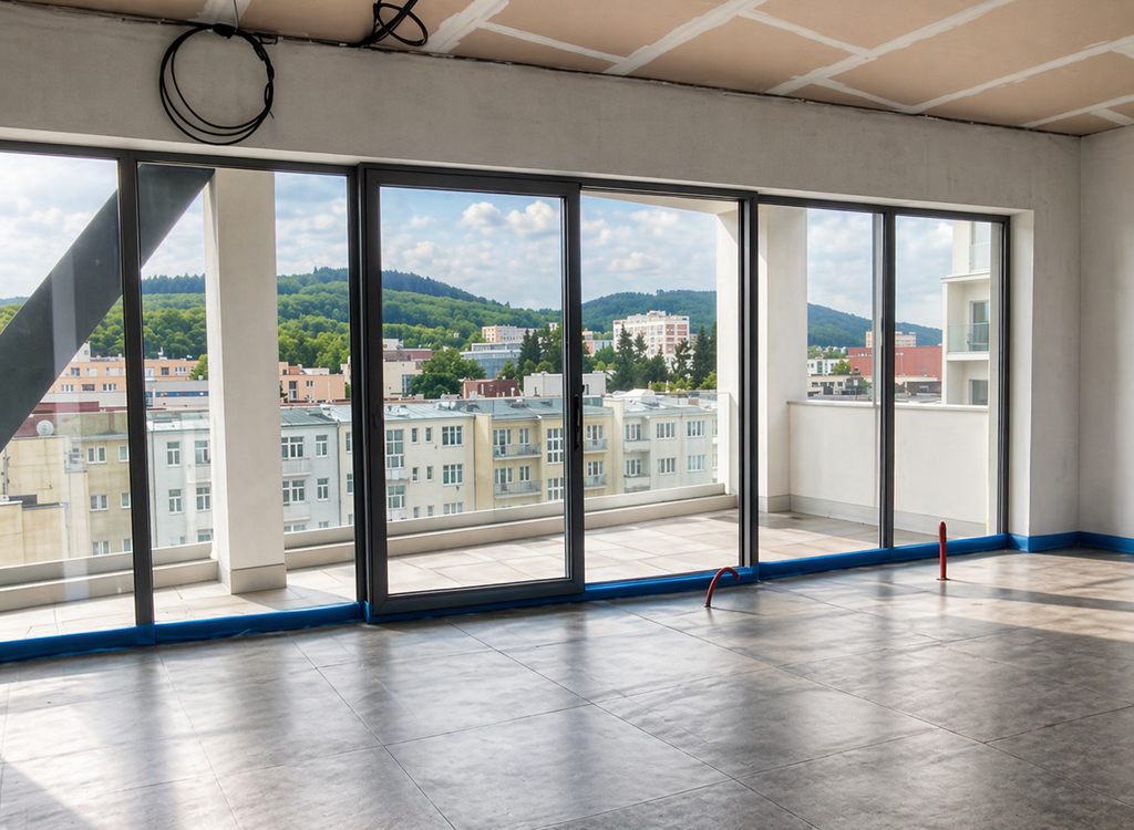 V bytě jsou dokončeny nosné konstrukce, okna, základní rozvody a část instalací. Naopak chybí finální povrchy podlah, kompletní vnitřní povrchové úpravy, sanitární vybavení, kuchyňská linka a část technologií. Tento stav umožňuje přizpůsobení interiéru individuálním požadavkům.