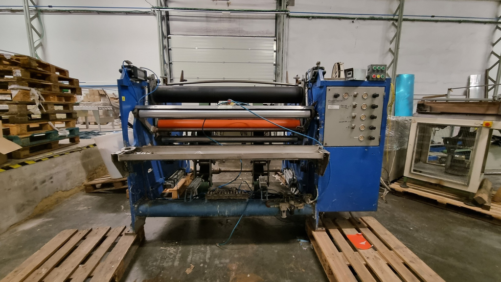 - stroj pro povrchovou úpravu papíru (impregnace, lepidla, laminace), typ RWD 2800/250, pracovní šířka 2800 mm, průměr válců 250 mm, výrobce pravděpodobně Čína (Euroasian Group Praha)