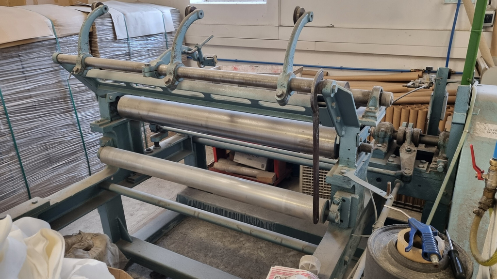 - řezací/převíjecí stroj Dusenbery/Fords Ltd, model 840 KR – určený k převíjení a řezání papíru z velkých rolí na menší (užší) pásy