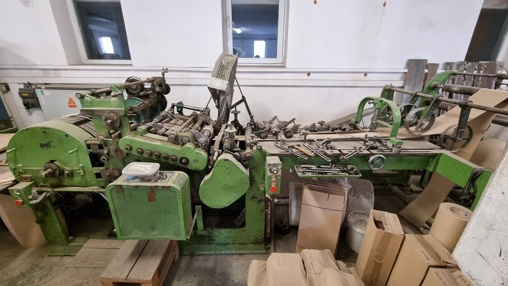 - stroj na výrobu papírových sáčků Fischer & Krecke (odhad 50.–60. léta)