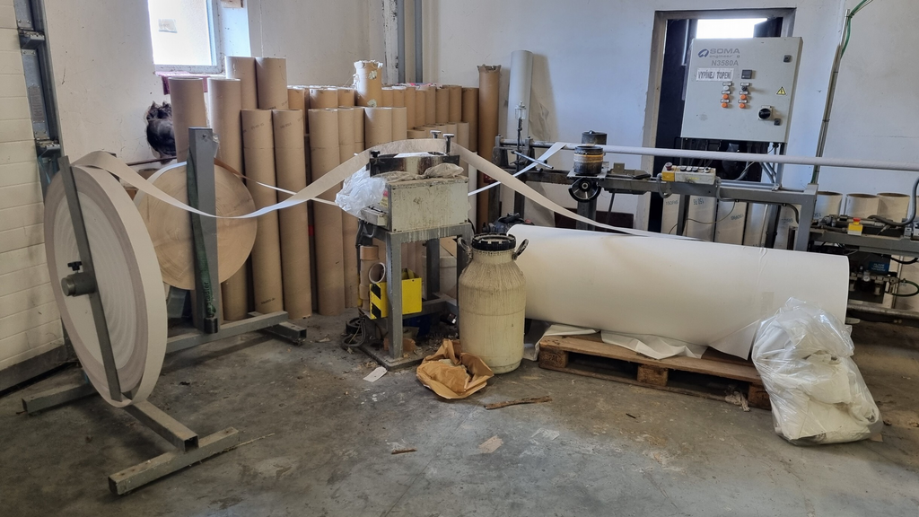 - kompletní linka na výrobu toaletního papíru a kuchyňských utěrek (r. v. cca 1989)