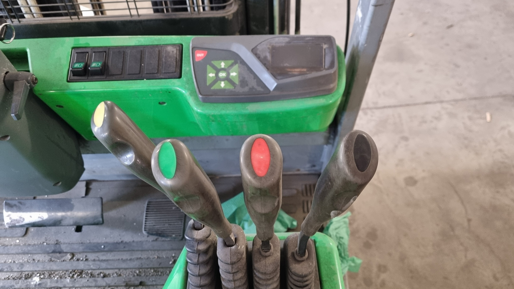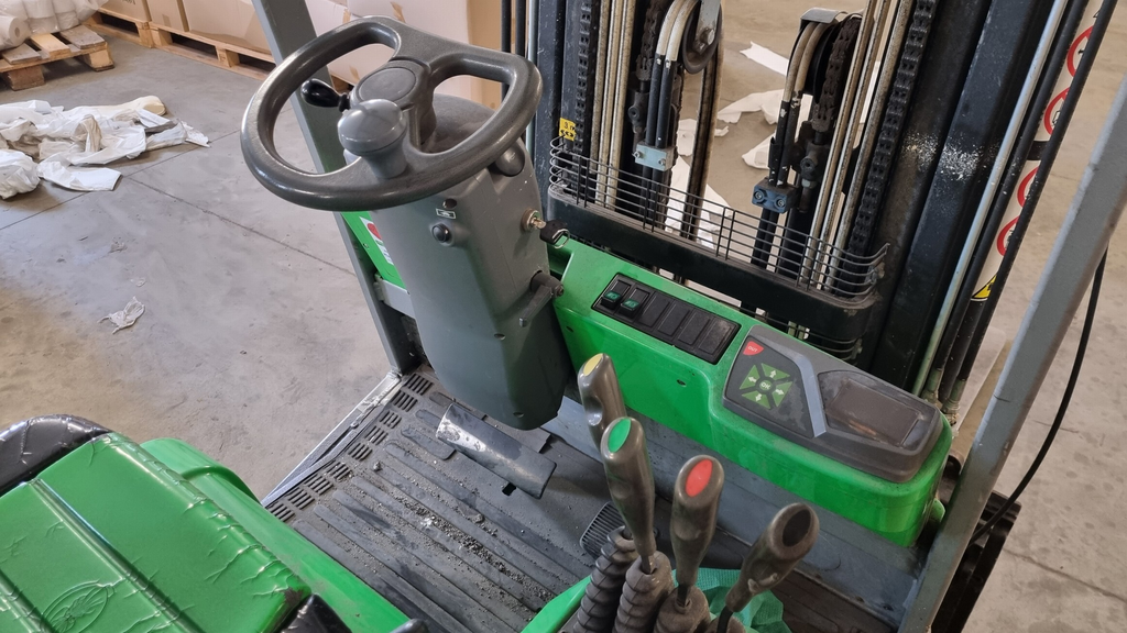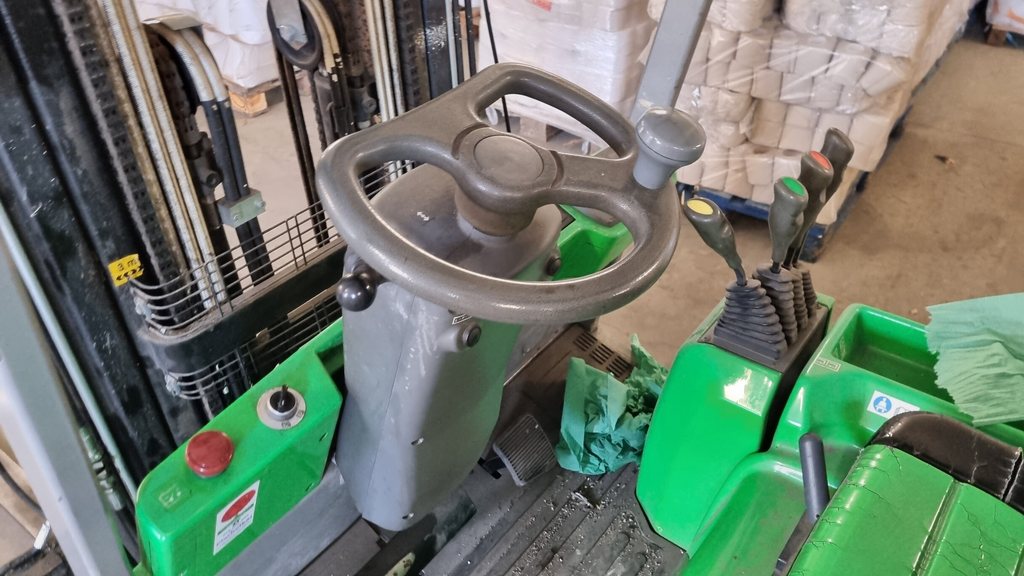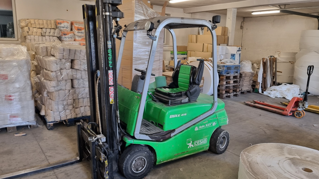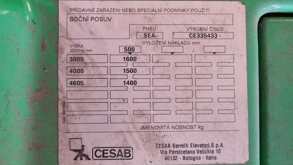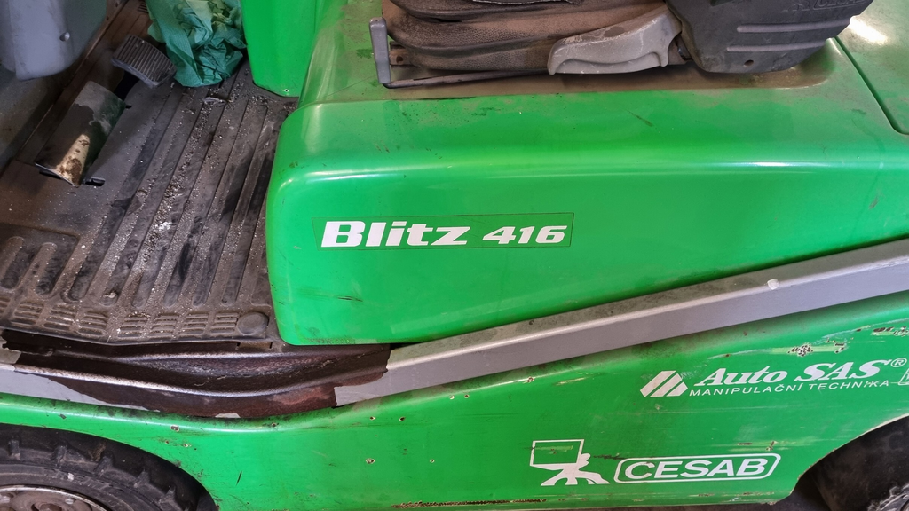 - vysokozdvižný vozík CESAB BLIZ 416, akumulátorový vysokozdvižný vozík, nosnost 1600 kg, boční posuv vidlí, rok výroby 2008.
