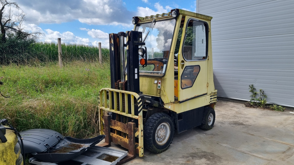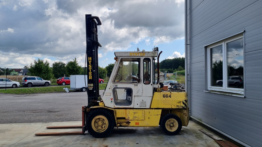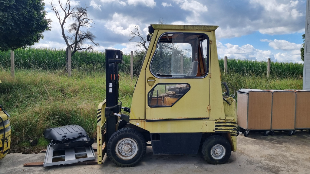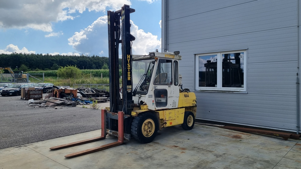 - Vysokozdvižný vozík HYSTER H5, nosnost 5000 lb, rok výroby 1990, pohon dieselový motor, kabina.