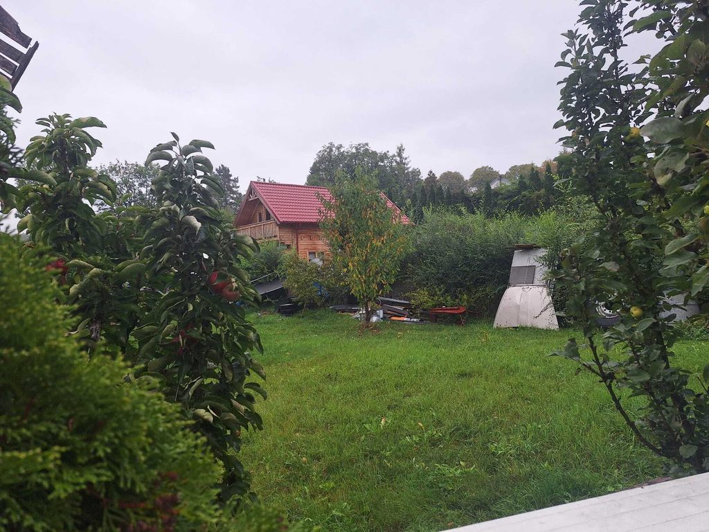 Předmětem dražby jsou i veškeré stavby a příslušenství, které se na pozemcích nachází, těmi jsou zejména - přízemní dřevostavba srubového typu s obytným podkrovím a garáž, přičemž ani jedna stavba není není zapsaná v katastru nemovitostí a dle sdělení Magistrátu města Teplice, Odboru územního plánování , byla stavba realizována bez potřebných povolení.