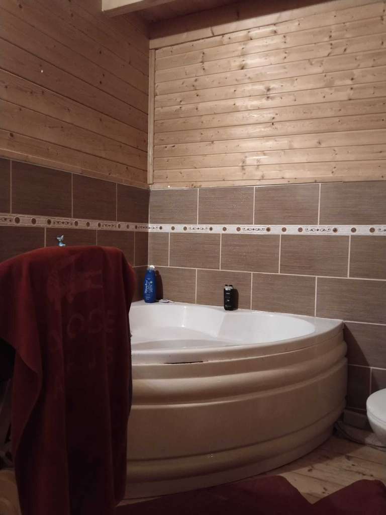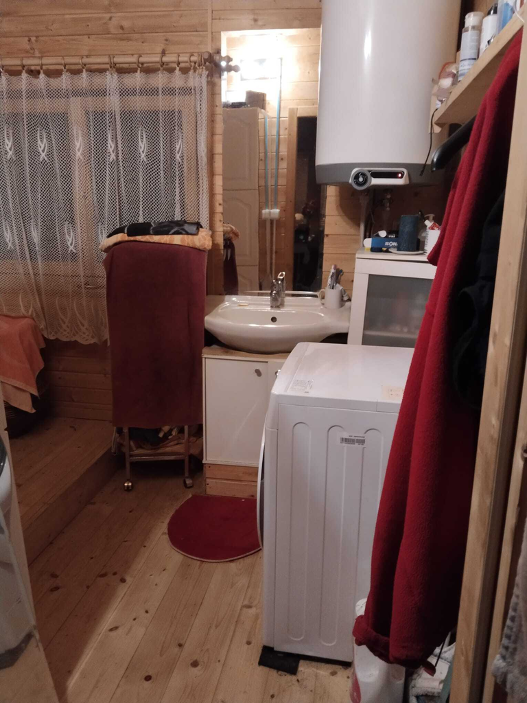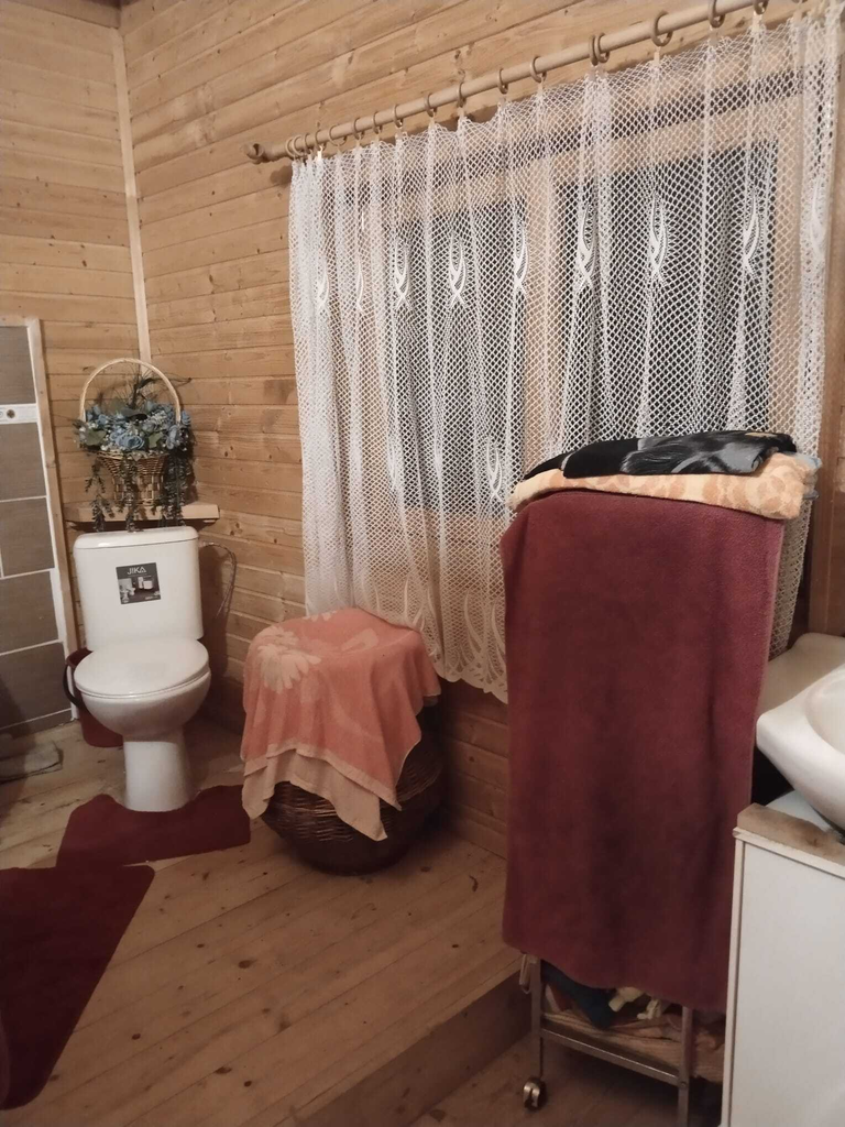 Dřevostavba srubového typu je vystavěna na betonové desce, stavba je jednopodlažní s obytným podkrovím.