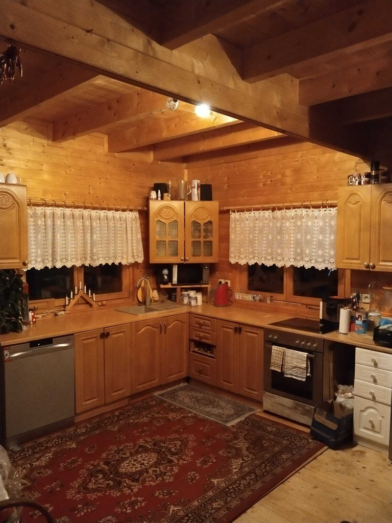 Topení v domě je řešeno krbovou vložkou.