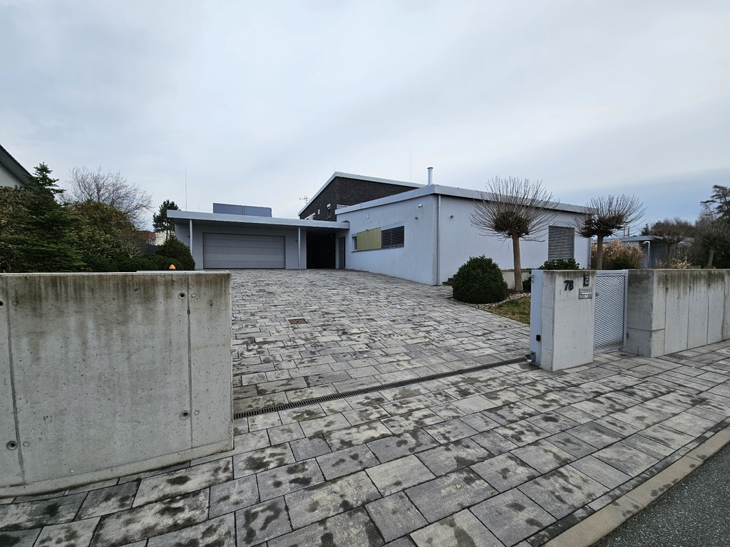 Stavba je v části přízemní, v části má 2 nadzemní podlaží. Dům není podsklepený. Dispozice je 5+1: v přízemí je zádveří, šatny, WC, komora, chodba se schodištěm, 2x pokoj, obývací pokoj, kuchyně, prádelna, koupelna s WC, v přístavbě je garáž, sušárna a sklad. V patře je chodba, pokoj, 2x koupelna s WC, technická místnost, a pokoj s chodbou a šatnou.