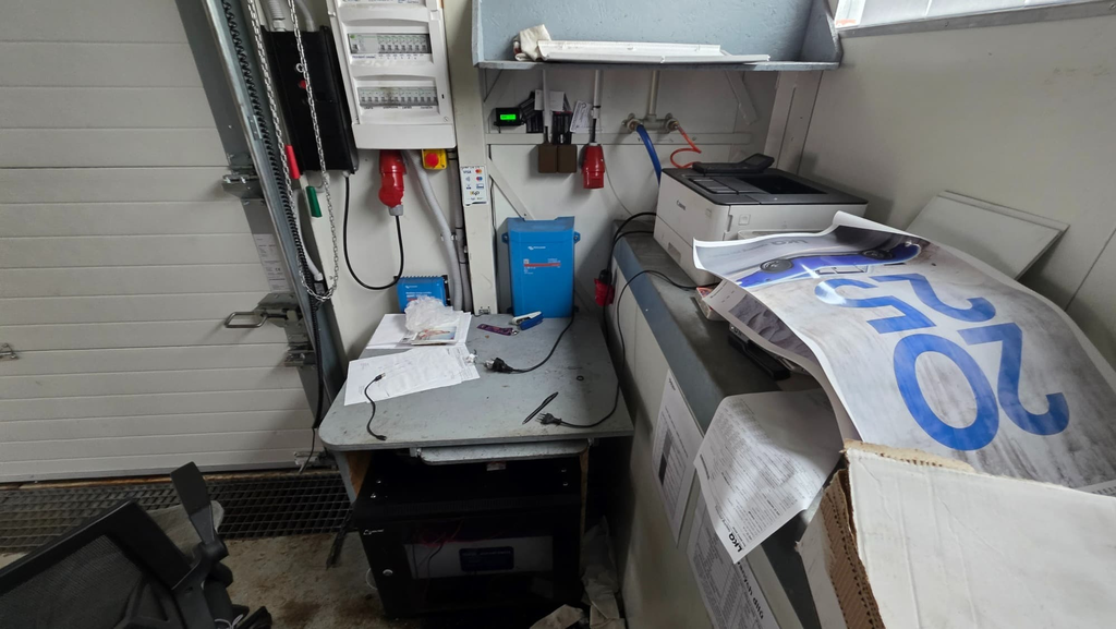 Kompresor FIAC, model XT 200, el. generátor, bateriový el. system victron energi, pc, tiskárna, další vybavení dle foto.